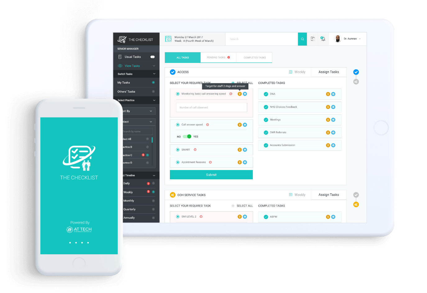 Design an application that help the staff of practices to perform their task more accurately, giving managers full visibility over task delegation, pending actions and completed tasks for one or more practices.