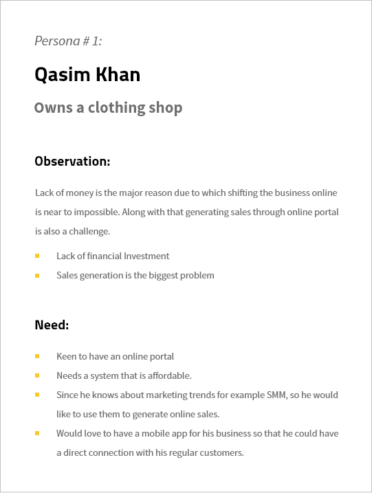 Most retailers in Pakistan are not adaptive to technology. As per sites survey and interviewing retailers who belong to Fashion and Shoe industry, we got only 40% positive response. Although on the other hand the response from Food industry was over-whelming as majority of them know the importance of digital platform. So, designing and developing the application for such marketplace was a huge challenge.